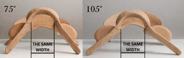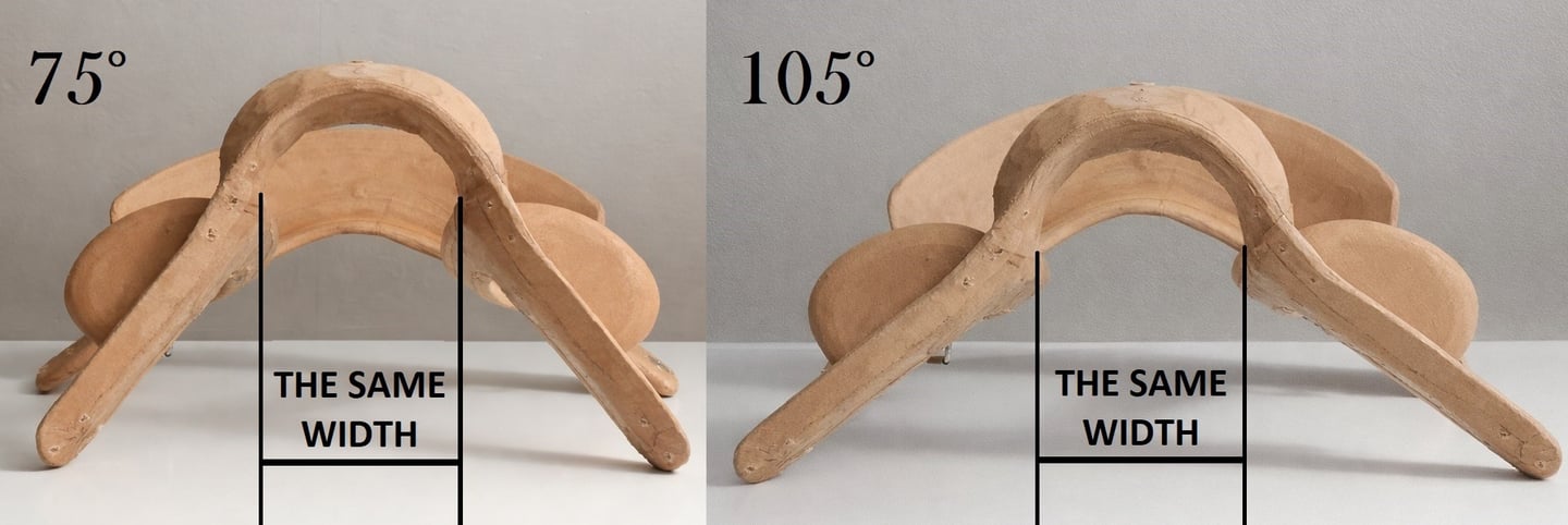 Furthermore, because the gullet width remains constant, changing the front arch angle does not cause the saddle bars to move further apart when the angle is widened. As a result, the twist remains consistently narrow, allowing the rider’s thighs to maintain the same degree of contact with the horse, regardless of the selected setting.