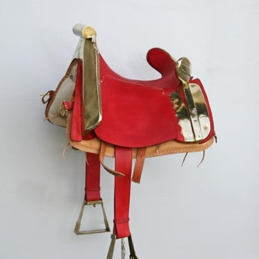 On the front and back pommel there are repoussed brass flowers. Saddle covered with black velvet.