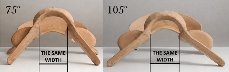 Furthermore, because the gullet width remains constant, changing the front arch angle does not cause the saddle bars to move further apart when the angle is widened. As a result, the twist remains consistently narrow, allowing the rider’s thighs to maintain the same degree of contact with the horse, regardless of the selected setting.