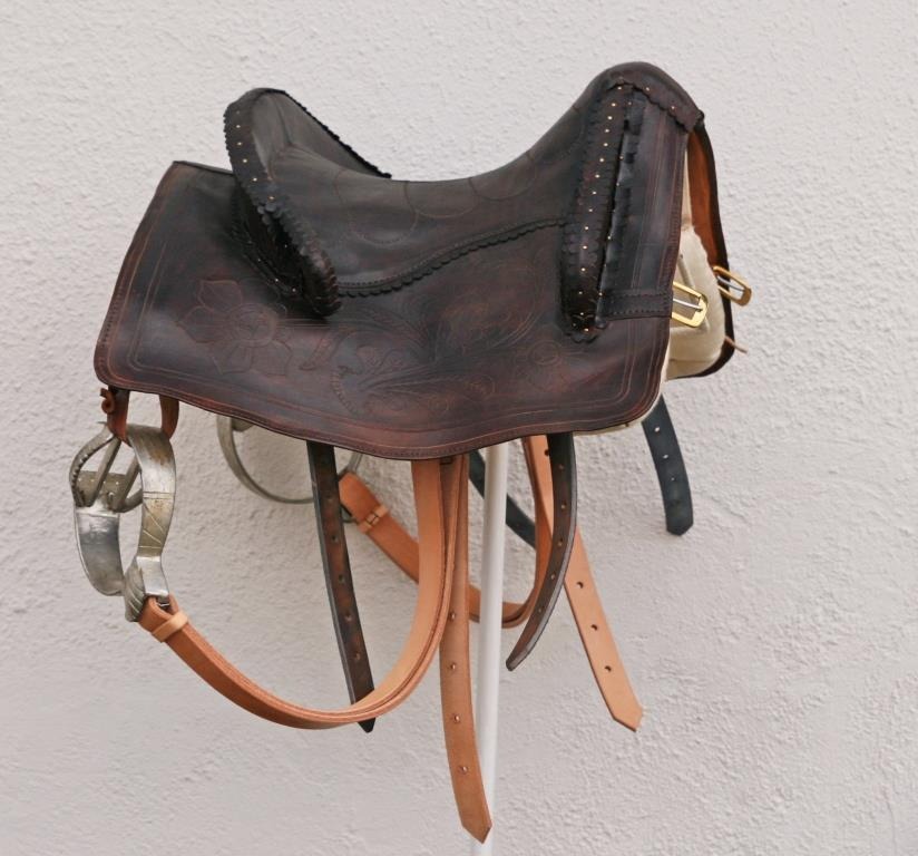 This kind of saddle is clearly the successor of baroque and renaissance type of saddles. Here, also, a tree with sticking out points is used and the seat is stretched on webbing straps too, you can notice in them a passion for higher pommels that give support during rapid maneuvers.