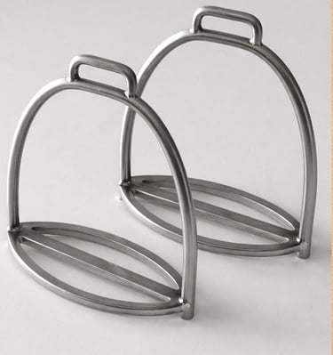 Baroque-style stirrups inspired by an illustration from François de la Guérinière, made from stainless steel. Internal dimension 12 cm.