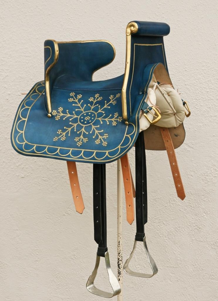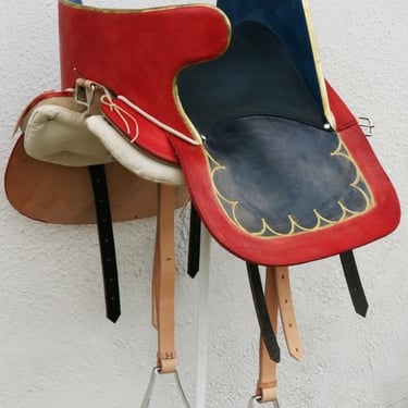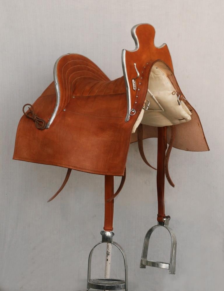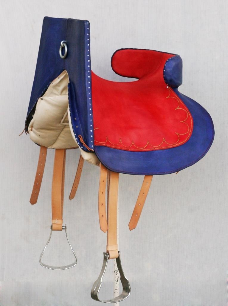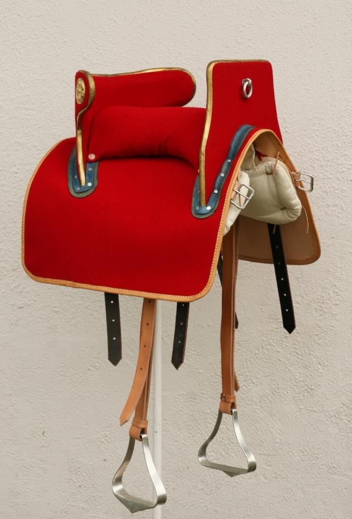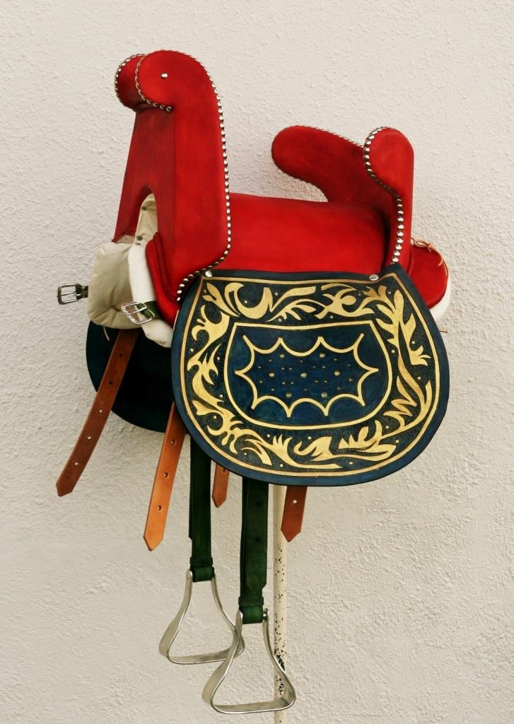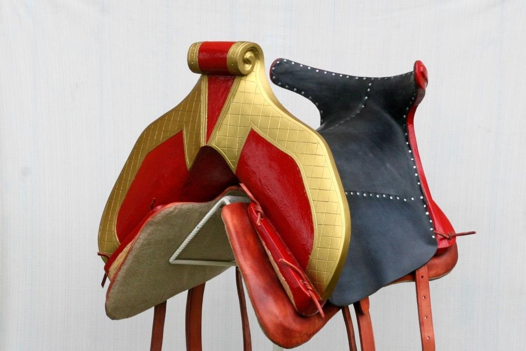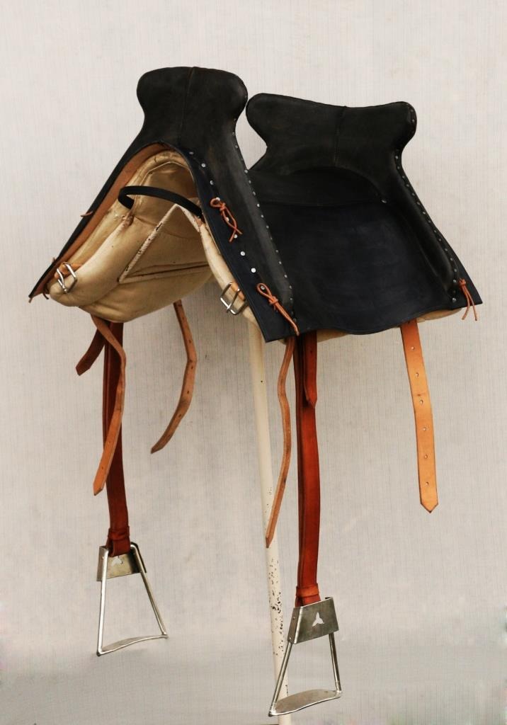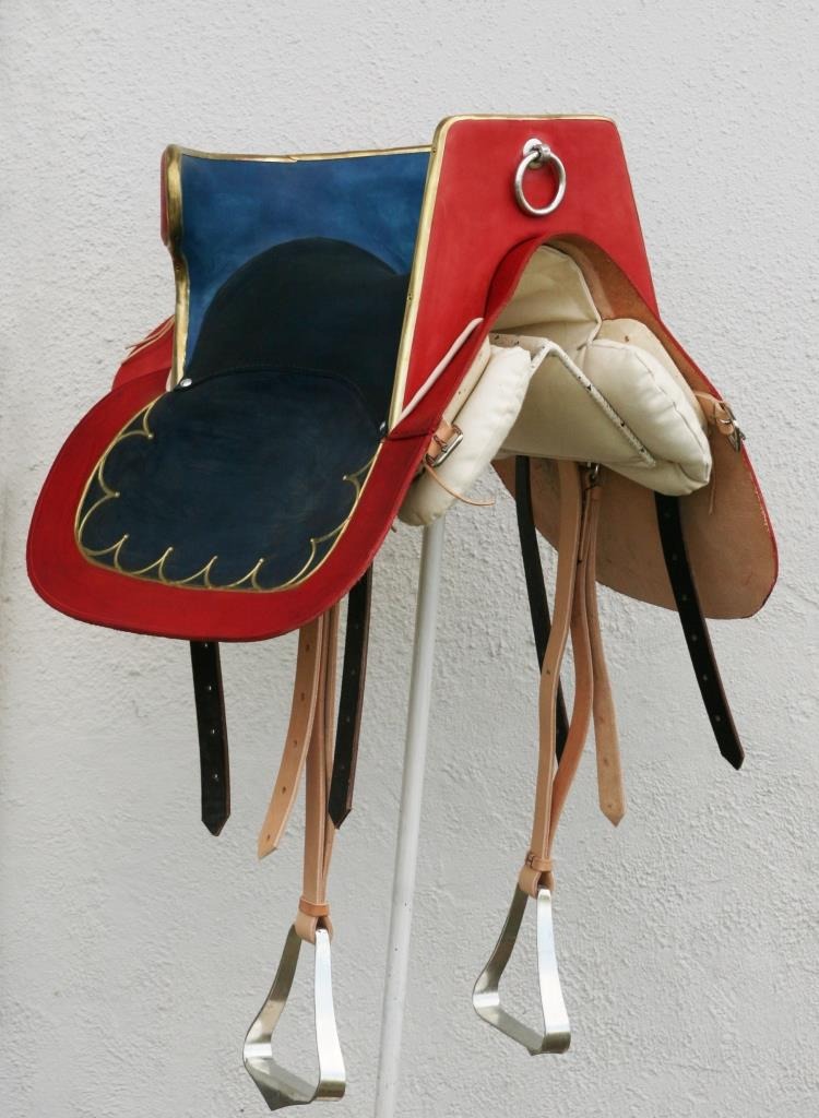 This is the same type of saddle as above. The difference is that the wooden tree is painted, not covered with leather. These are not historical saddles, but rather ones for everyday training.