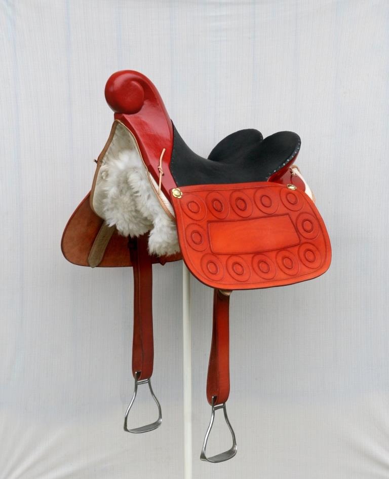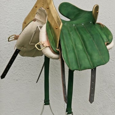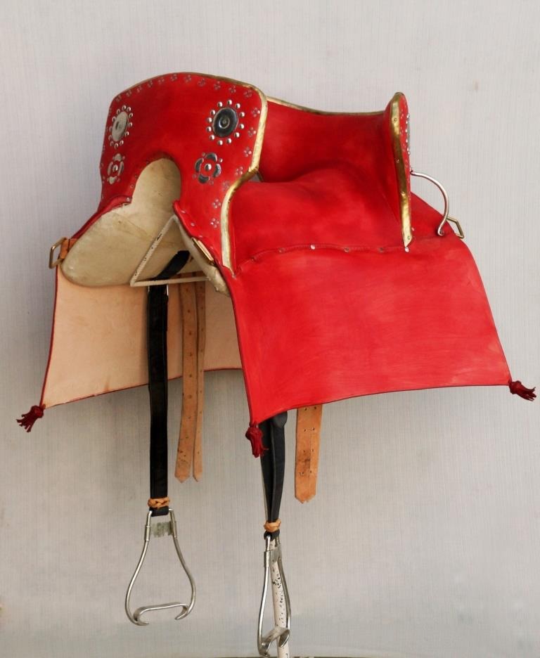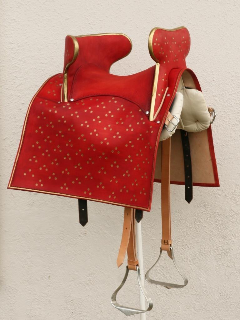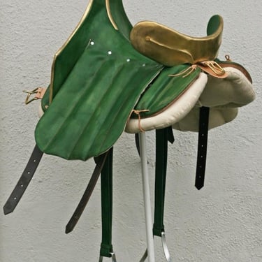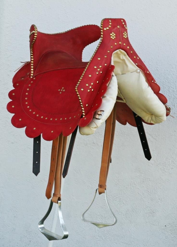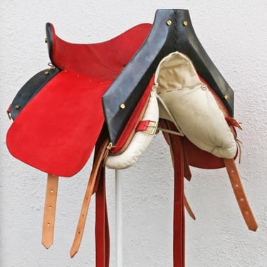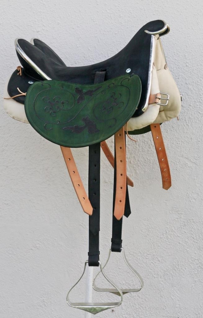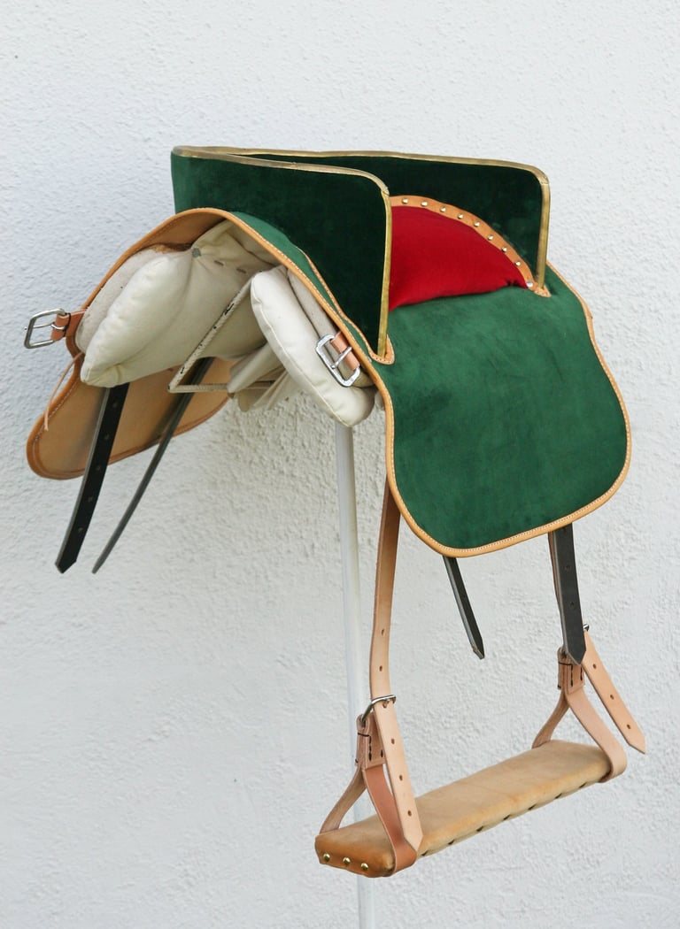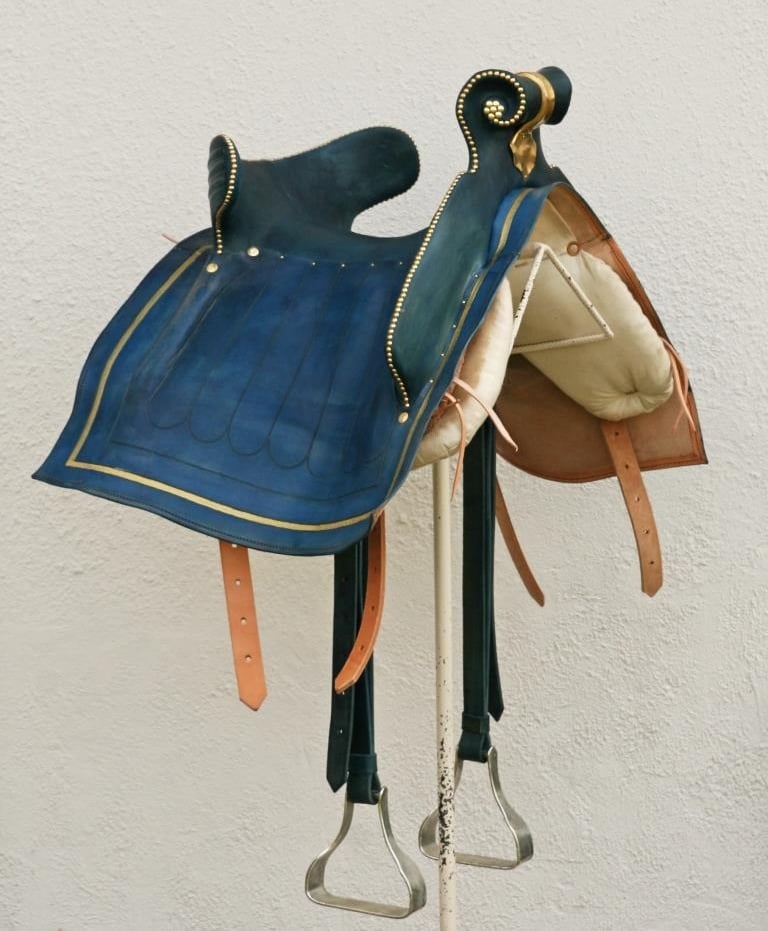 This is the same type of saddle as above. The difference is that the wooden tree is painted, not covered with leather. These are not historical saddles, but rather ones for everyday training.