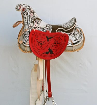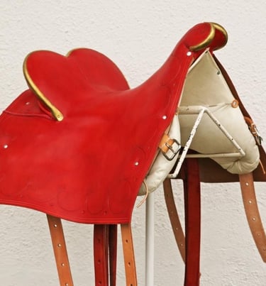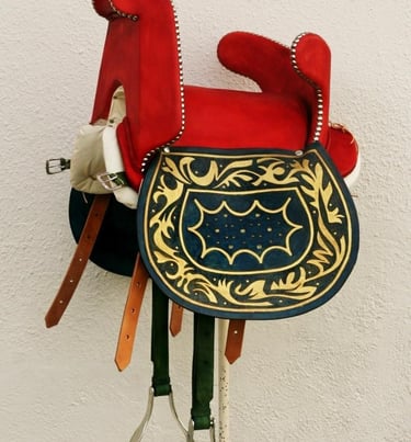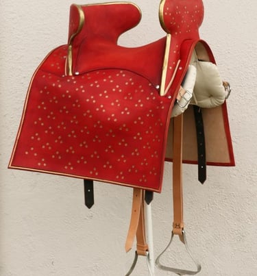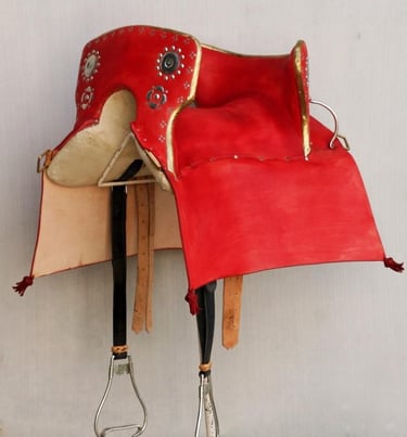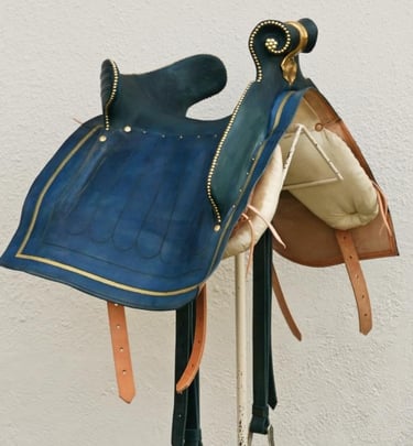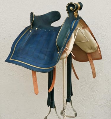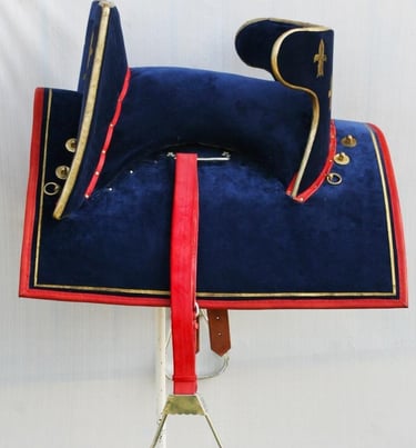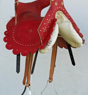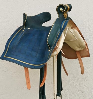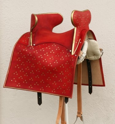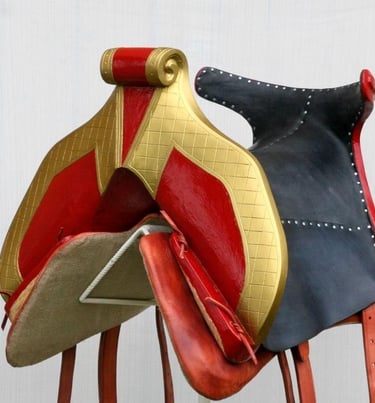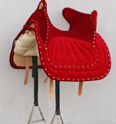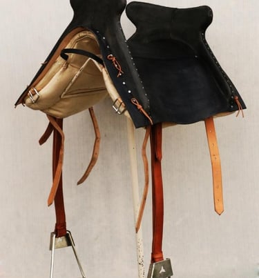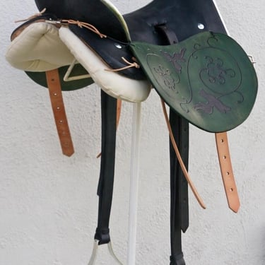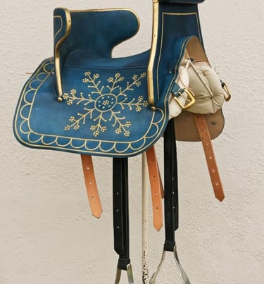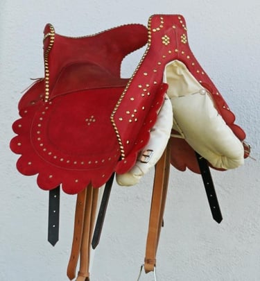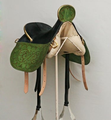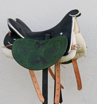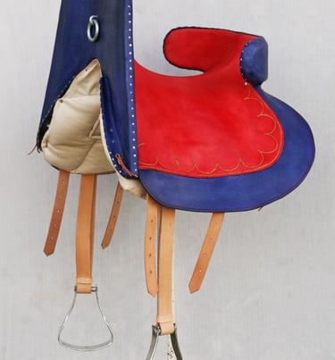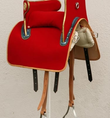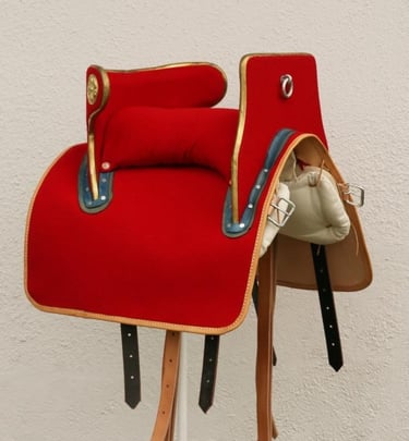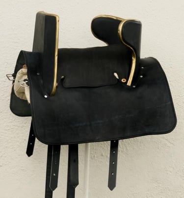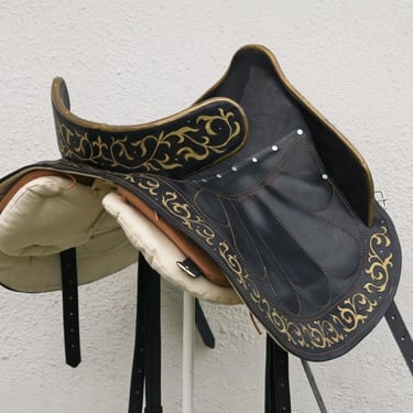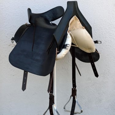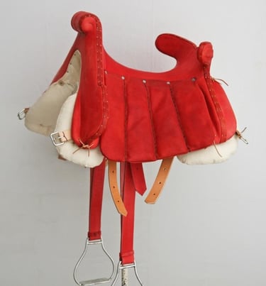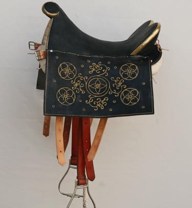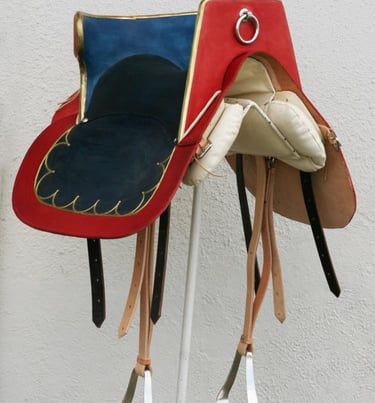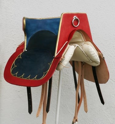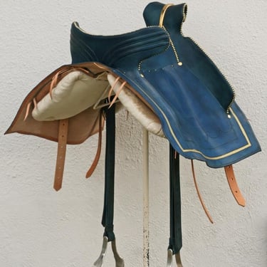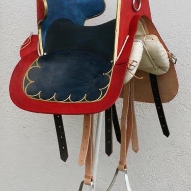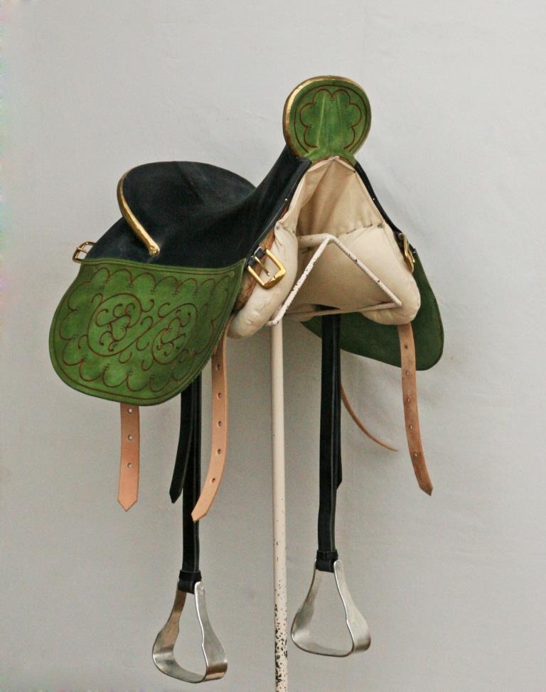 This is the same type of saddle as above. The difference is that the wooden tree is painted, not covered with leather. These are not historical saddles, but rather ones for everyday training.