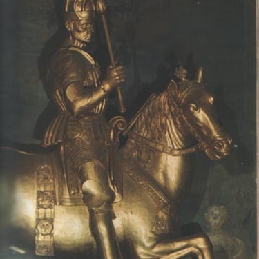 The saddle based on the statue of Bartolomeo Colleoni in Bergamo (Italy) created ca. 1500.