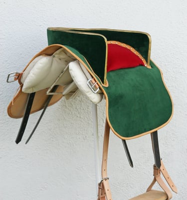 Although I have not found any of the preserved originals with pillows attached to the bottom of the saddle, I recommend using them for the sake of the horse and I attach them to every saddle of this kind.