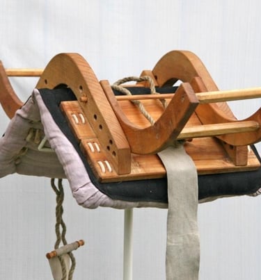 There can by added pillows in the front of the knee for protection and keeping position of the legs. It could be finished with wool, velvet or leather.