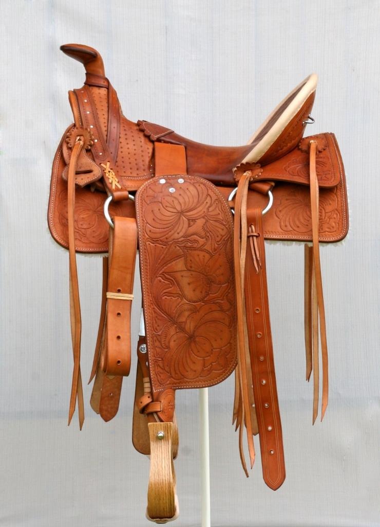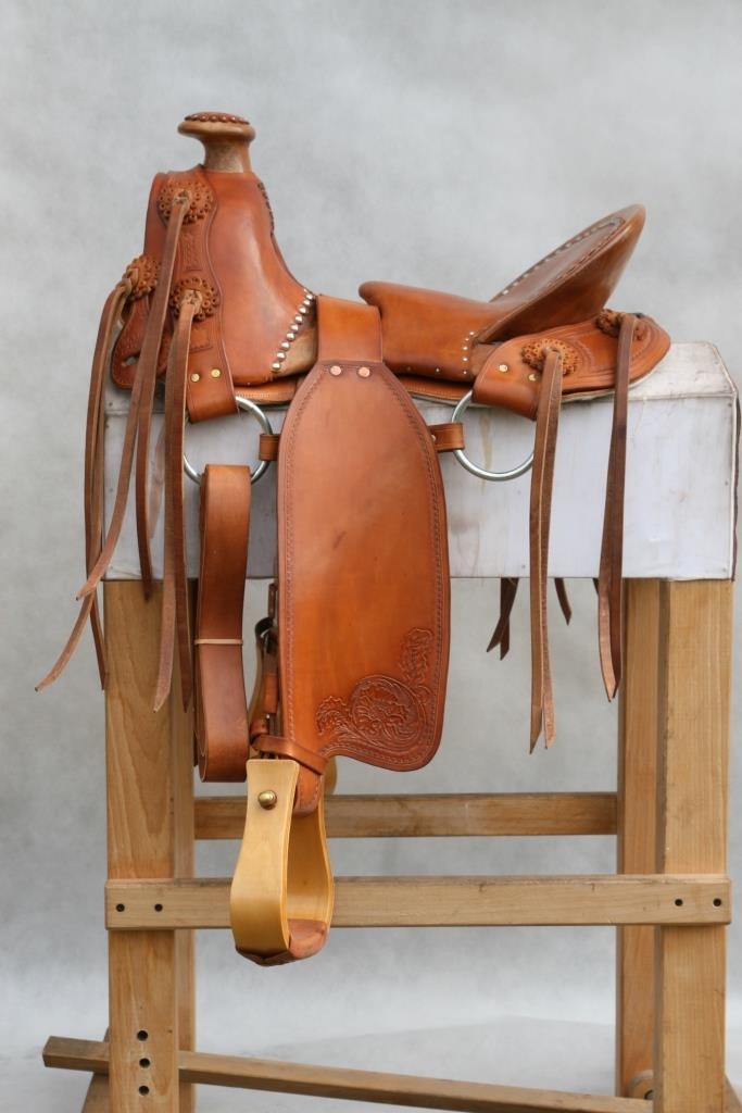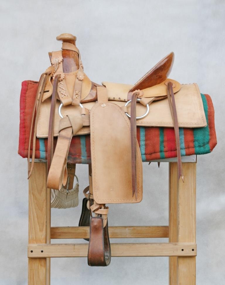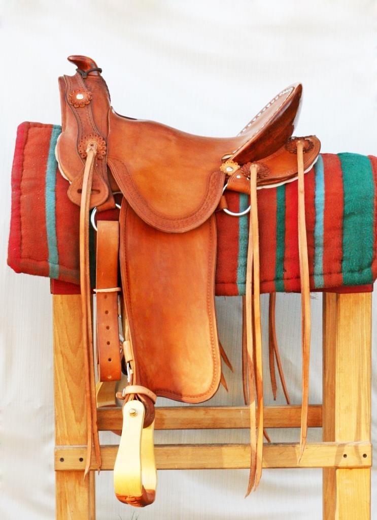 These saddles have their roots in the city of Santa Fe and they were the favorite type of saddle in the era of 'mountain riders'. Within the limits of the Northern Territory of Spain, the locals created a saddle from the available materials. It was made from the highly decorated Spanish saddles that have been later modified for utility purposes. Characterized by wide fenders, large conchos and adorned with carvings.